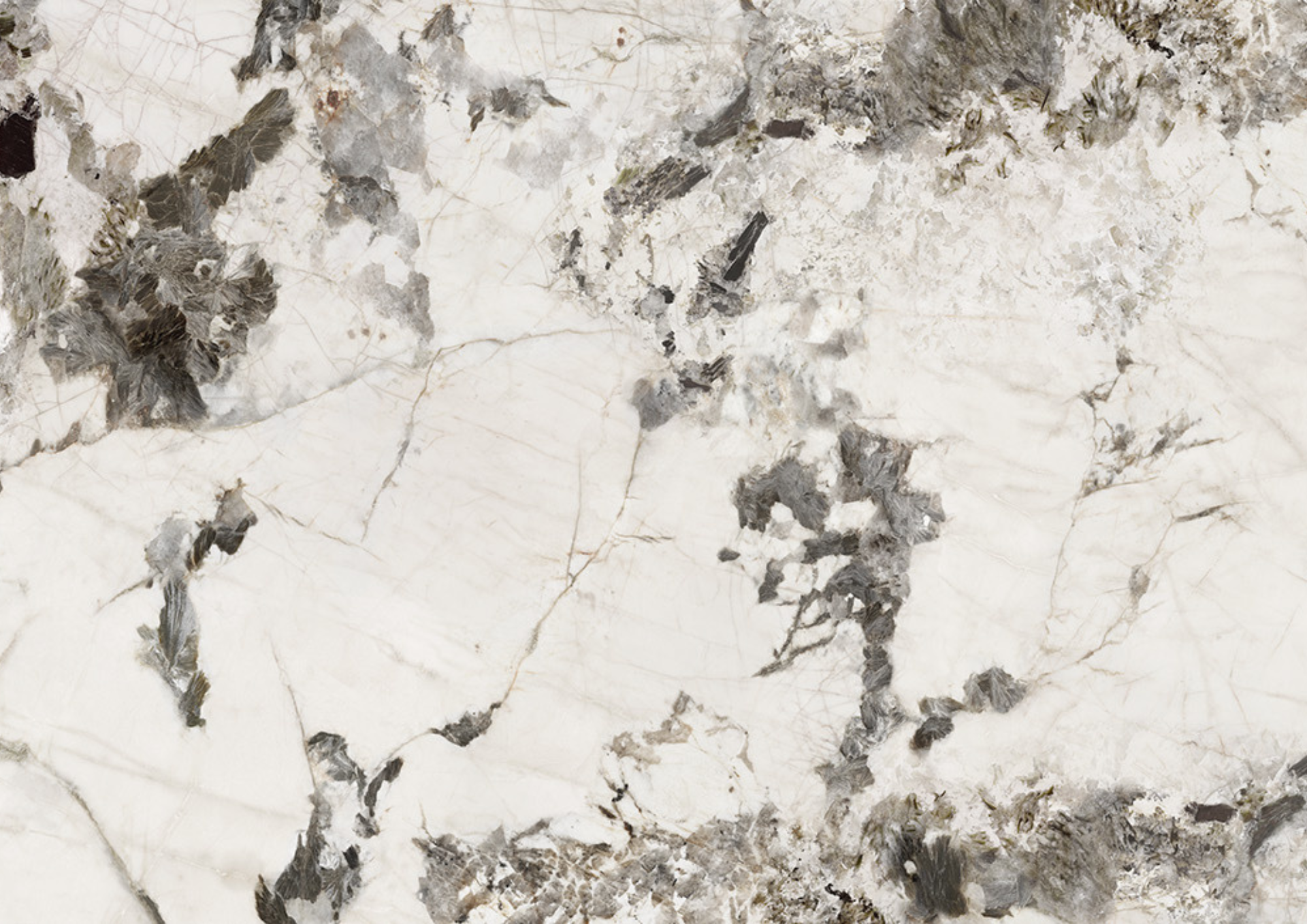 Andarin Via este asemenea unui fragment smuls direct din natură, cu contraste puternice și un model neregulat ce surprinde privirea. Urmele minerale întunecate lasă o amprentă îndrăzneață pe fundalul alb, conturând o expresie vizuală de mare forță.