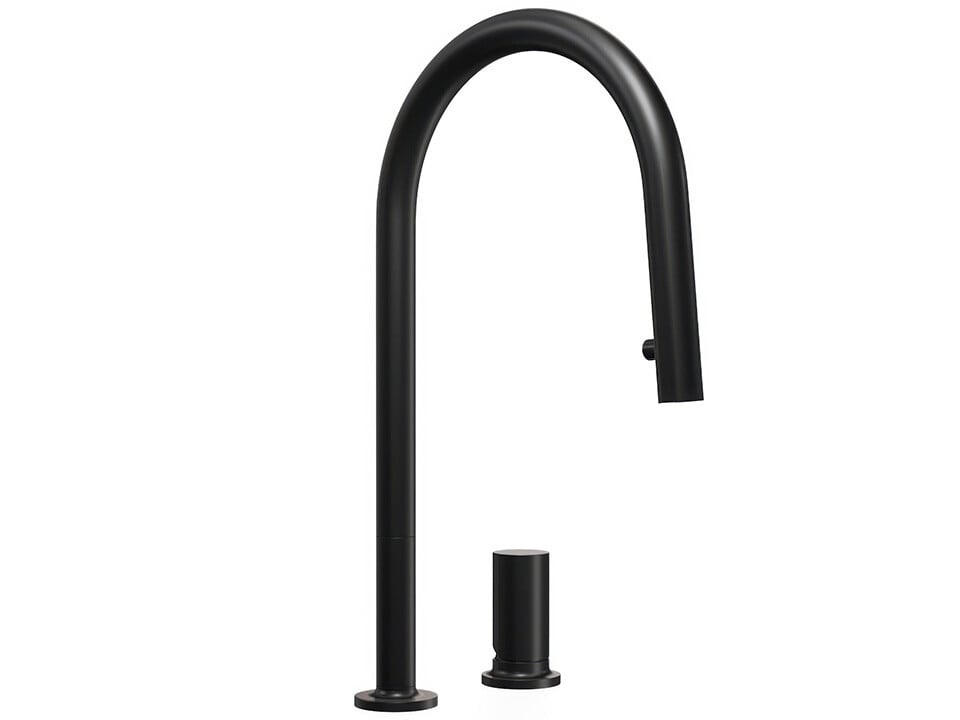 Designul minimalist și finisajul negru mat transformă bateria într-un element decorativ aparte, perfect adaptat bucătăriilor moderne.