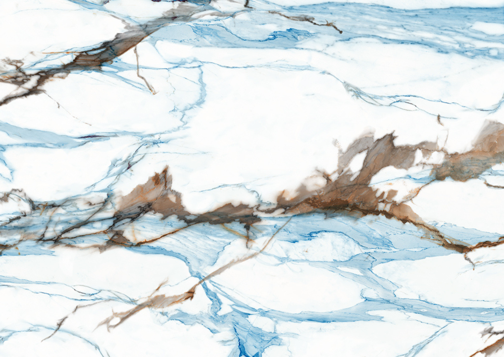 paletă fresh: albastru deschis pe fond alb cu vene maro – contrast fin, look luxuriant;