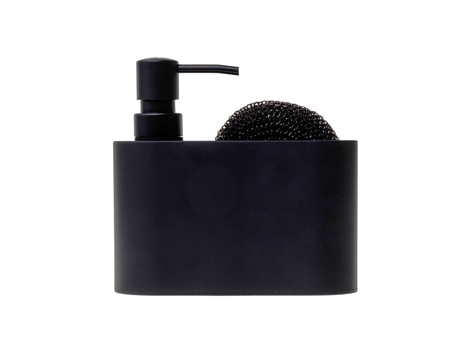 Dozatorul de detergent cu spațiu pentru burete, cu design oval și finisaj neted, este soluția practică și modernă pentru o bucătărie organizată și funcțională. Îți oferă confortul de a avea detergentul și buretele mereu la îndemână, evitând dezordinea din jurul chiuvetei. Realizat din polipropilenă rezistentă la abraziune, cu un aspect elegant și o culoare neagră atemporală, se potrivește perfect în orice tip de decor, fie în bucătărie, fie în baie sau spălătorie.