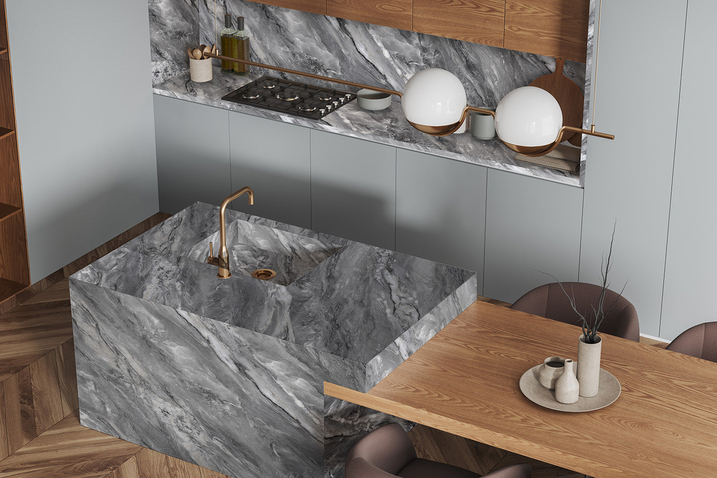 Suprafață: non-poroasă, igienică, ușor de întreținut și rezistentă la pete, zgârieturi și temperaturi ridicate – ideală pentru utilizare intensă în bucătării, băi și placări verticale.